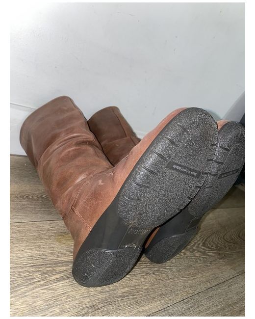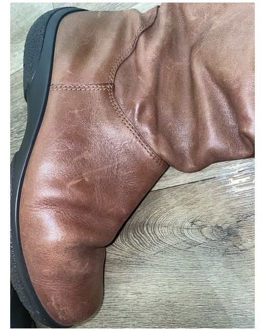 Brand new hotter brown/tan mid length boots. Stretchy elastic to allow extra room so wider legs or thick jeans. Newbuck material, never worn but the material appears slightly scratched but just needs to be buffed