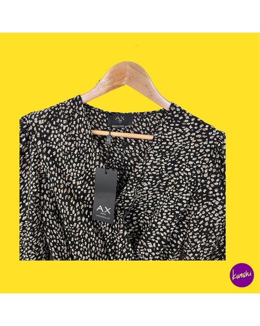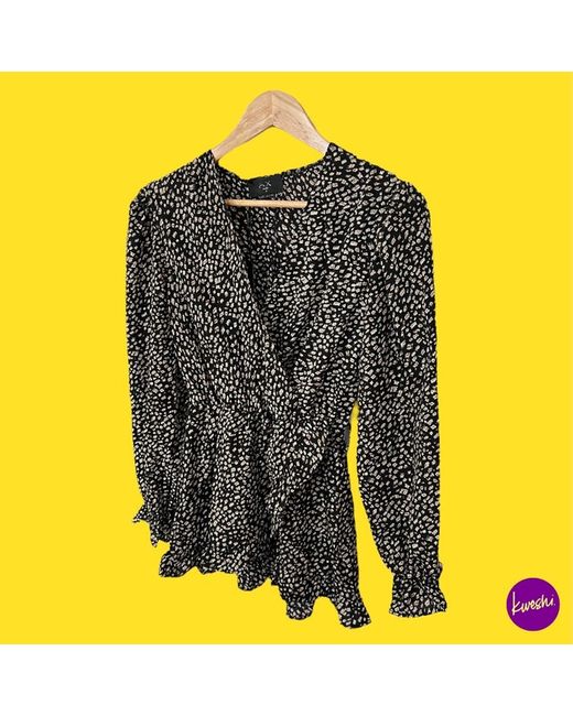 Women's Black Lightweight Printed Wrap Top V-Neckline UK 8