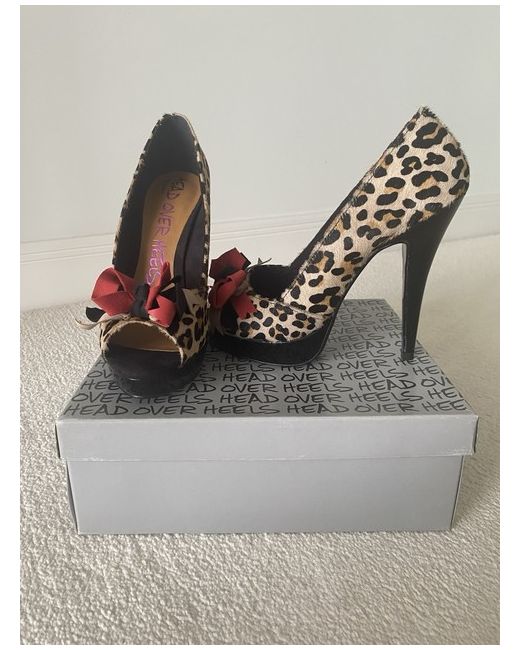 Beautiful leopard print, long haired suede shoes, with red and black accents. Open toe and platform sole. Brand new with tags and original box plus extra heel cap replacements.