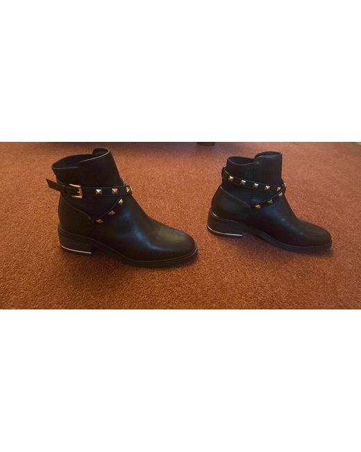 Black studded boots with gold strip on heal