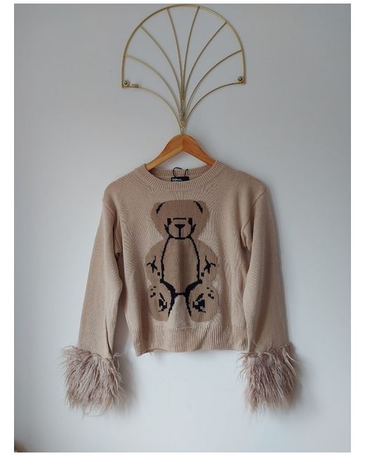 Crew neck knitted jumper - Boxy fit - Faux fur - Super fluffy trims - Teddy bear intarsia - Fits true to size - Made with 100% acrylic (body) pit to pit 18 inch & 21 inch Length