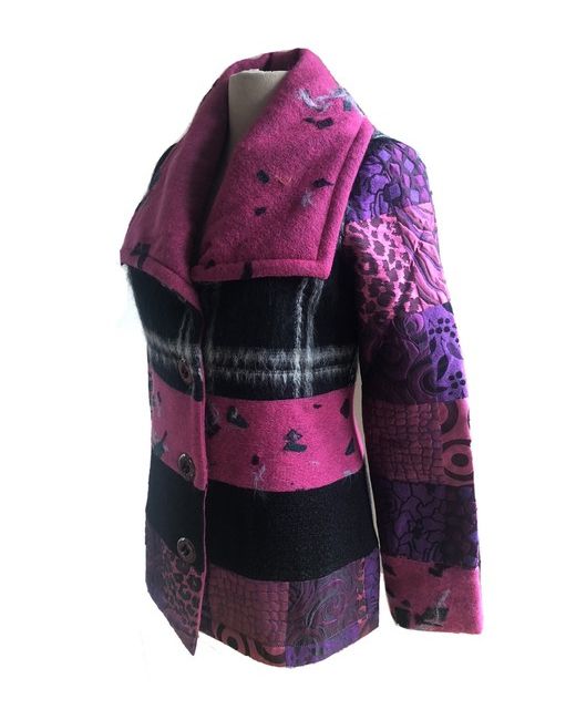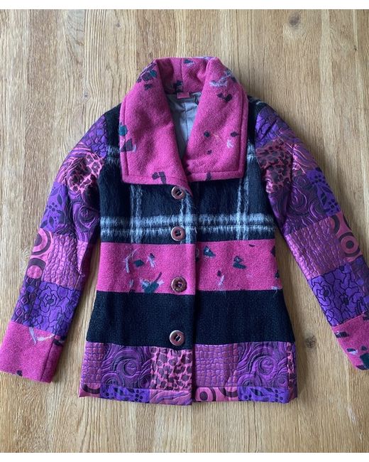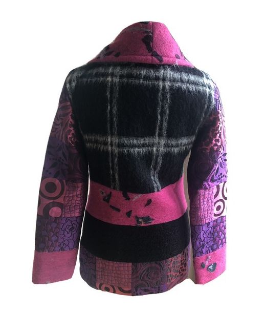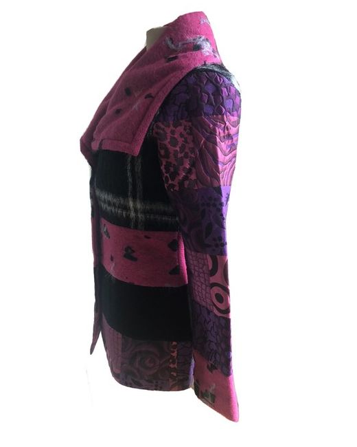 Lined in a lovely grey fabric. Save the Queen Italy Pink Patchwork Blazer Fitted Coat S. Excellent unworn condition. Outer arm from shoulder seam to cuff 24”. Waist area 15.5”.