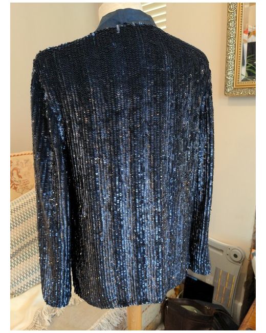 Add a touch of glamour to your wardrobe with this beautiful deep blue sequin jacket blazer from ASOS. Perfect for any occasion, this limited edition, hip-length blazer features long sleeves, a button closure, and oversized fit, making it both stylish and comfortable.
