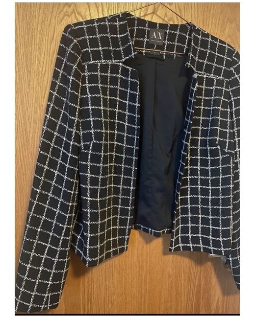 Never actually worn - navy Armani exchange chequered short blazer jacket #armani #armaniexchange #blazer #blazers #work #capsulewardrobe #minimalist #capsulecollection