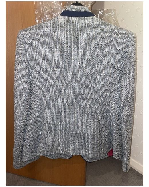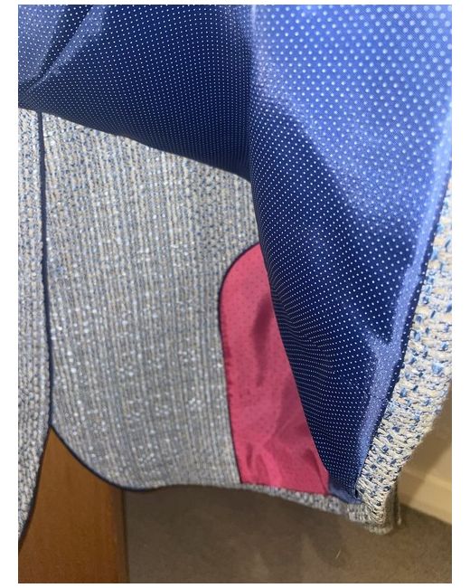 Elevate your casual outfit with this stylish blue plaid blazer. Perfect for any occasion, this tailored suit jacket is made of high-quality polyester material that guarantees comfort and durability. The jacket features a notch lapel style, making it a versatile addition to your wardrobe. This suit jacket is designed for women in size 14 and is perfect for those who want to achieve a chic and sophisticated look. The Blazer brand is known for its quality and style, making it a great investment for any fashion-conscious individual. Get ready to turn heads with this stunning blazer/suit jacket. Suit jacket / blazer Brand new in plastic bag Grey with navy detail Silver buttons Satin inside Woven material Bariloche Made in Spain