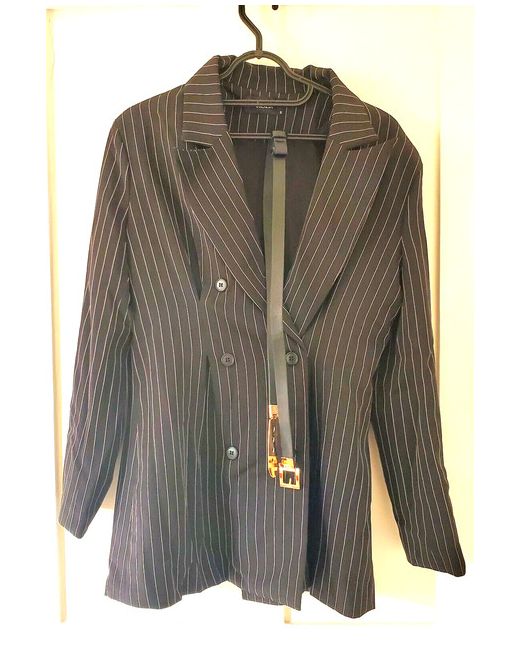 Elevate your look with this timeless black blazer from a well-known brand. Made from high-quality polyester material, this basic jacket features a pinstriped design that exudes elegance and sophistication. Perfect for smart and formal occasions, this fitted jacket is tailored to flatter a size small woman's figure, providing a sleek and polished appearance. Whether you're attending a business meeting or a dinner party, this classic blazer is a versatile piece that can easily be dressed up or down. The jacket's black colour complements any outfit, while its stylish design adds a touch of sophistication to any ensemble. Invest in this wardrobe staple and enjoy a timeless piece that will never go out of style.
