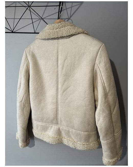 Jacket Cream L Faux Suede Shearling Aviator Winter