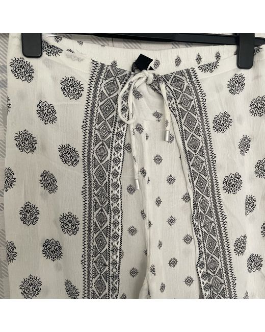 Bnwot Ladies Floaty Cream/Black Patterned Summer/Beach Trousers Size 10. With Drawstring Waist And Side Panels