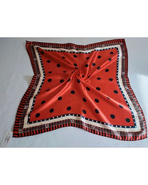 Women's Red Neck Square Silk Scarf Ladybird Dots Patterned 50cm x