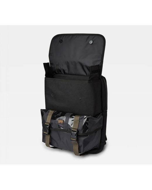 Contrast is created through color and flexibility of the materials. As the lower front pocket shows a relaxed look. All components can be closed by either a zipper, a magnetic snap or buckles. Also inside, padding is added to make it suitable to bring along a laptop or tablet.