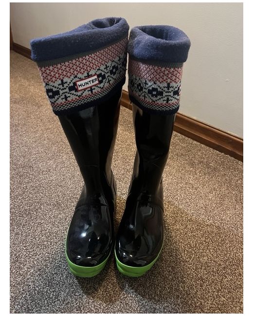 Be ready for any weather conditions with these stylish Hunter Wellies in size 8. Made with durable rubber material, these boots will keep your feet dry and comfortable. The vibrant green colour adds a pop of colour to any outfit, making them perfect for any occasion. Ideal for women, these boots are designed with a comfortable fit and a stylish appearance. With their durable construction and waterproof material, they are great for any weather conditions. The boots are made by the trusted brand Hunter, known for their high-quality shoes. Don't miss out on the chance to own these wellies and keep your feet dry and comfortable. COMES WITH HUNTER WELLIE SOCKS
