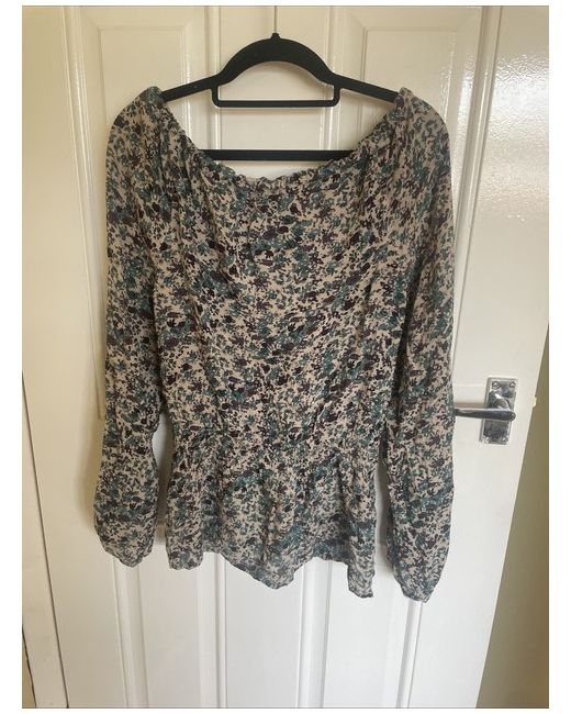 Never worn, smoke free property, purple and green blouse, elasticated neck line with tie to front, elasticated waist, button detail to sleeves