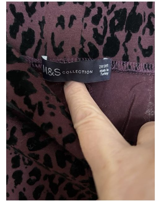 These M and S leggings in size 20 Short are a stylish and comfortable choice for women. Made from a blend of cotton and elastane, they feature a flocked animal print pattern in a dark burgundy colour. The leggings have an elastic waist for a secure fit and are perfect for all seasons, whether it's autumn, winter, spring, or summer. With their stretchy jersey fabric, they offer comfort and flexibility for everyday wear.