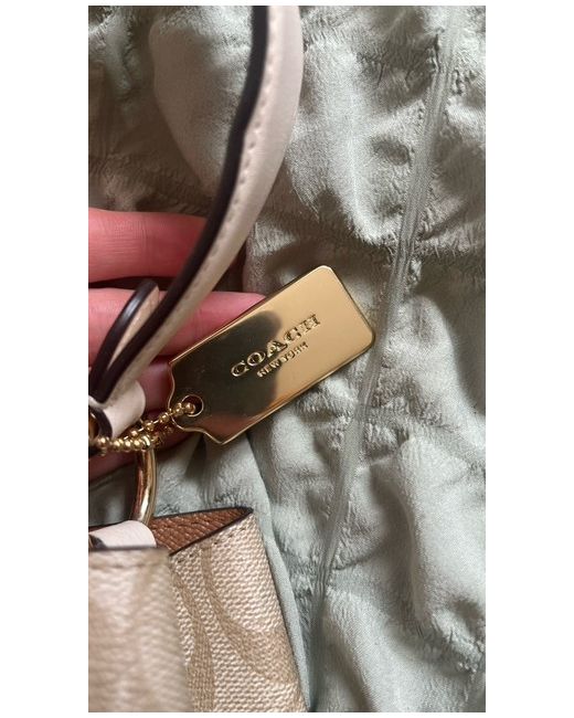 The Coach Bucket Bag in Vanilla Monogram is a stylish shoulder bag designed for women. Made from luxurious leather with a vanilla exterior colour and adjustable strap, this designer handbag is perfect for casual occasions. The iconic Coach monogram adds a touch of sophistication to this timeless accessory, making it a must-have piece for any fashion-forward woman.