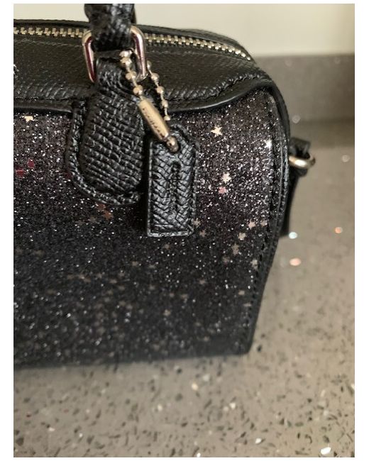 New Coach Micro Bennett Shoulder/Crossbody Bag, Glitter Stars Crossgrain Leather, Zip Closure, Fabric Lining, Internal pockets for Cards, Handles 21/4" Drop, Shoulder/Crossbody strap 231/2" Drop. Beautiful Stylish Bag, Unused Gift.