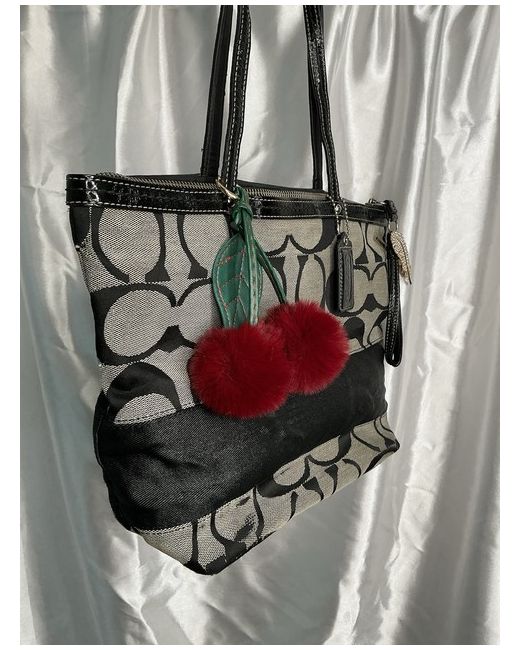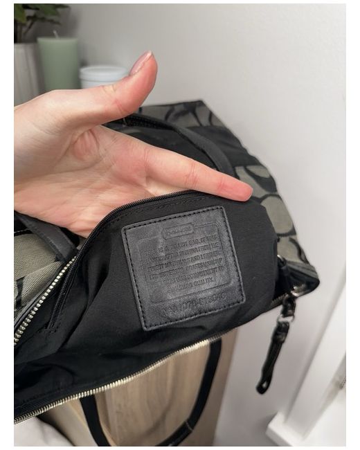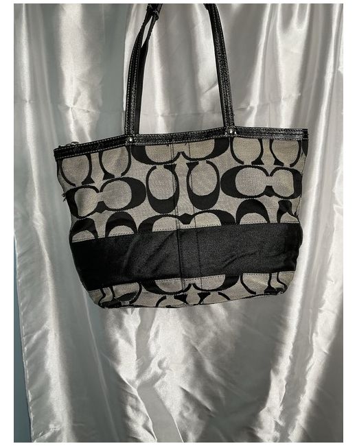 COACH BLACK & GRAY SIGNATURE MONOGRAM TOTE BAG - Measurement: W 34 × H 25 x D 10 cm - shoulderstrap 20 cm from base. Can easily be thrown over the shoulders Material; Canvas & Leather Color: Black & Light Gray Coach Signature Monogram
