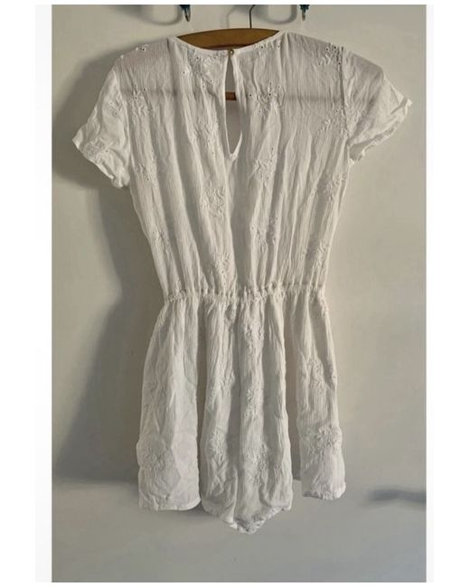 This Hollister playsuit is the perfect addition to any wardrobe. The white lace fabric creates a delicate and elegant look, while the XS size ensures a comfortable fit for women of all shapes and sizes. The one-piece design is perfect for those who want to make a statement, and the brand name adds a touch of sophistication to any outfit. The playsuit is suitable for any occasion, from a casual day out to a more formal event. The department is women's clothing, and it falls under the Jumpsuits & Playsuits category. The style is a playsuit, and the fabric type is lace. With its beautiful design and quality construction, this Hollister playsuit is a must-have for any fashion-forward woman.