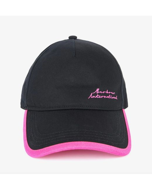 A matt nylon 5 panel sports cap featuring an adjustable backstrap and contrast piping inset into the peak. Contrast Barbour International script logo print, centralised to the outer front. 100% COTTON.