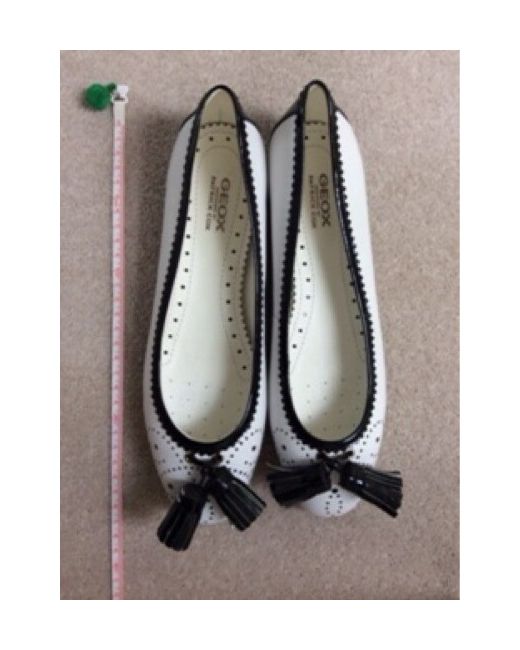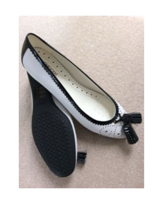 Patrick Cox for Geox. Tassel Pump. Not worn. Excellent condition. White Slip on pump with black patent detailing. Leather upper, leather insole, man made sole. Size 5