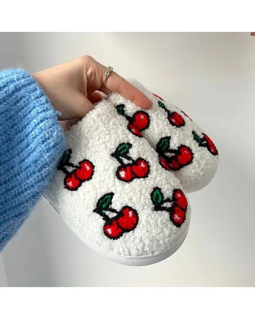 • Style: Cozy Plush Slippers. Step into ultimate comfort with these adorable cherry-printed plush slippers! Keep your feet toasty and stylish with these cherry-printed plush slippers – the perfect cute and cozy addition to your loungewear!