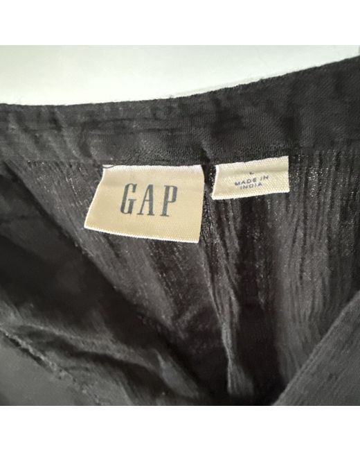 This Gap blouse in size L features a bohemian style with long sleeves and crochet accents on the fabric type of rayon. The black blouse has a button detail and is made of polyester material, suitable for women looking for a basic yet stylish top. The Belle character theme adds a unique touch to this regular-sized top from the Gap brand.