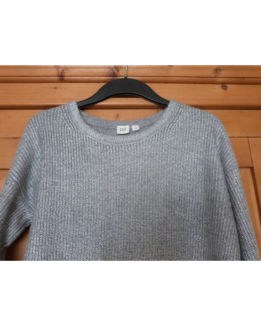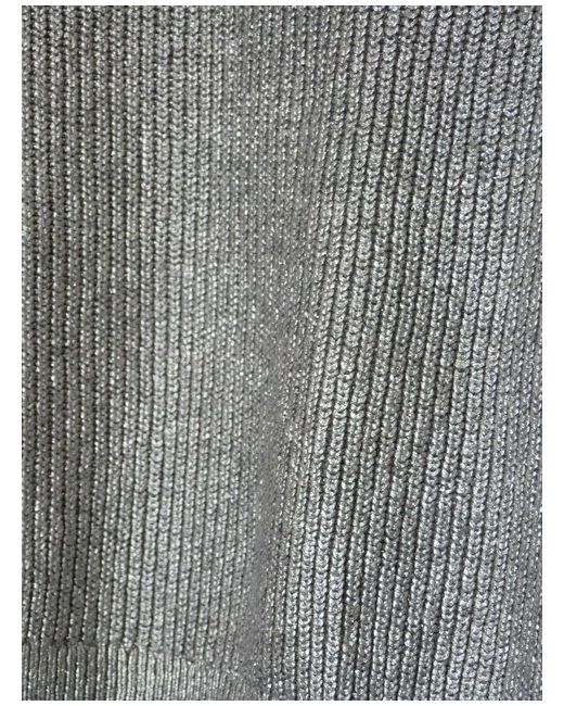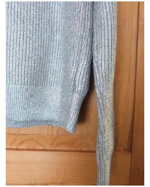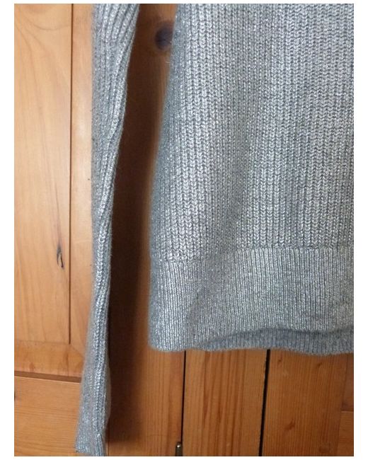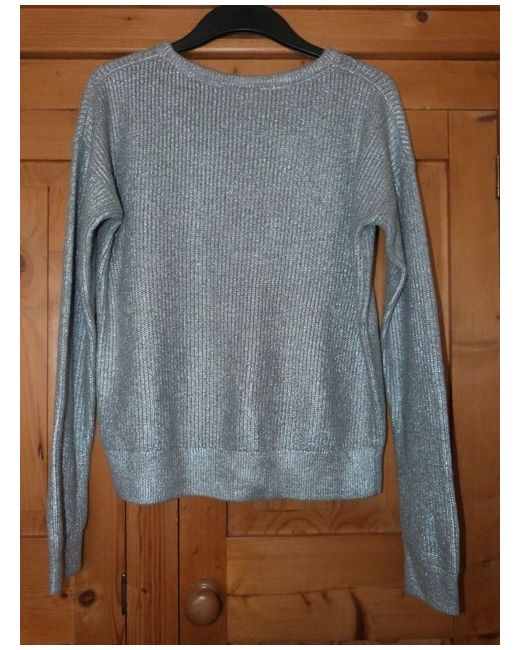 Sleek little jumper! Nice subtlematt silver (not loud). Soft knit on underside. Classic crew neck style. Lightweight and comfy! Cost £49.95.