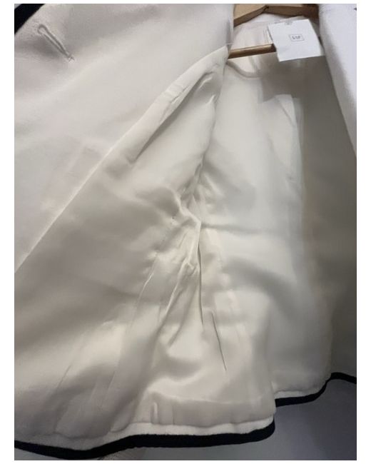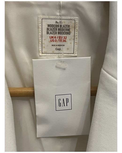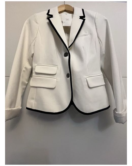 Elevate your wardrobe with this stunning white blazer with black trim from Gap. Crafted with high-quality polyester, this blazer is a must-have for any fashion-forward woman. The blazer features a classic style that is both timeless and versatile, making it perfect for any occasion. With its regular size type and size 4 (US 0) and never worn