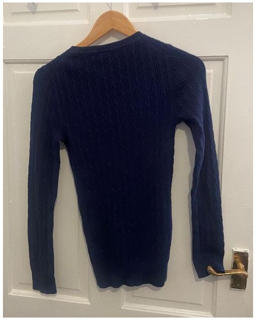 Ladies Navy Cotton Cable Knit Jumper Small