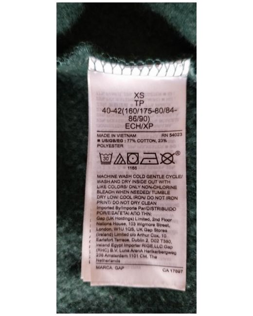 Sweatshirt GAP 1969 Athletic. Sleeve length PETITE: 74,5 - 75 cm. Chest circumference: 82 - 84,5 cm. Waist circumference: 82 - 84,5 cm. Hip circumference: 89,5 - 92 cm. Sleeve length TALL: 83,5 - 84 cm.