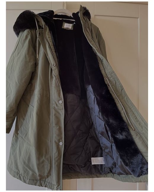 This stylish Gap coat in khaki with black faux fur is a must-have for any fashion-forward woman. The brand is known for its quality and attention to detail, ensuring that this coat will last for years to come. Never been worn excellent condition