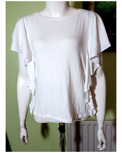 Lovely top from Gap in white, round neck, sleeveless but has a waterfall like flutter to the sides which looks like sleeves.