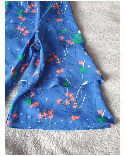 Bnwt Gap Blue Floral Blouse Size Medium. 3/4 Length Ruffle Sleeve Detail Slip Over Head With A Ribbon Tie To Neck Area Rrp £34.99
