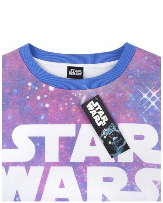 A must have for Star Wars fashionistas this Star Wars Cosmic women's sublimation sweatshirt is packed with cool design! This ladies' sweatshirt showcases the classic Star Wars logo in white across the front along with a striking all over cosmic background print. The sublimation print covers the phone of the sweatshirt with the galaxy design in rich purples, pinks and blues; this sweatshirt has cuffed sleeves, hem and neck also in a bright purple colour. Made from a poly-cotton blend with a soft feel, this Star Wars sweatshirt offers a regular fit and feel with a crew neck and long sleeves. Please follow all care label instructions carefully.