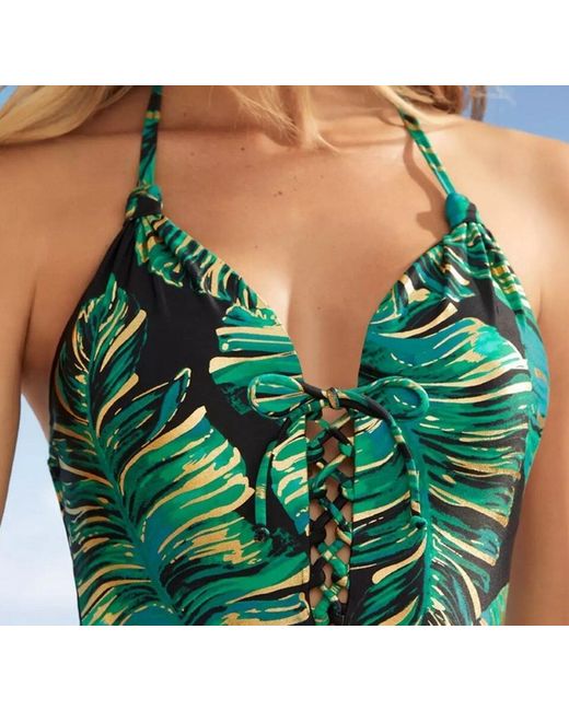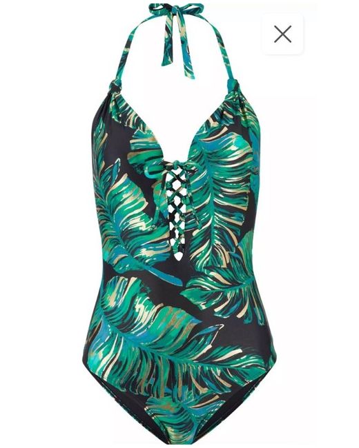 A sexy swimsuit that really causes a stir. In a halterneck design that features a plunging lace-up detail neckline and has a low cut back with a tie closure; plus it has removable cup padding. Fibre Content 80% Polyamide, 20% Elastane Lining: 100% Polyester.