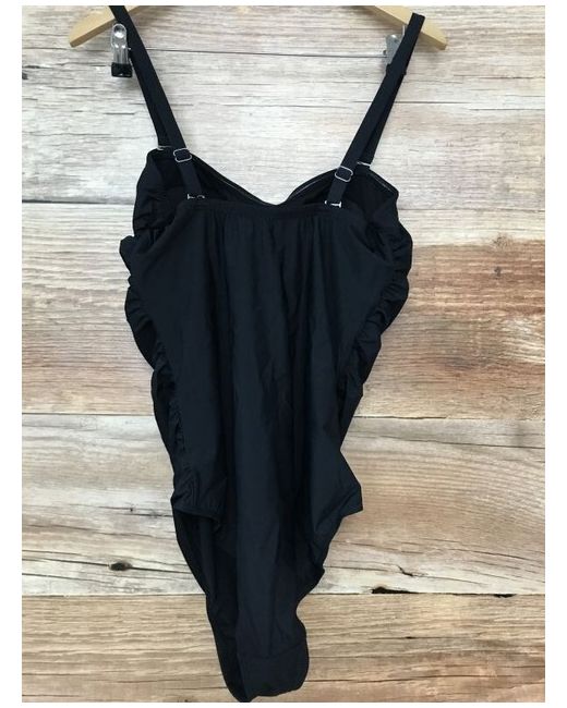 ✓ With ruffled material on the front. ✓ Black Swimsuit. ✓ Hygiene strip still attached.