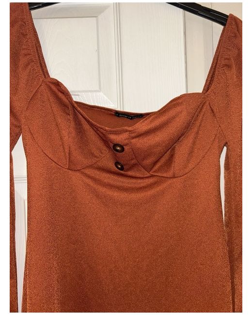 Rust Orange dress, short in length but covers modesty/bum, no risk of flashing. Long sleeved with cups for bust and button detail in the front. Brand new but no tags, removed them as was going to wear and decided not to.