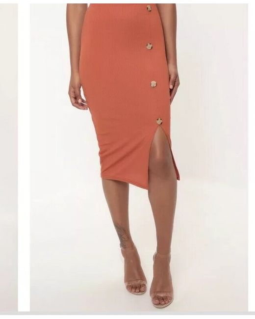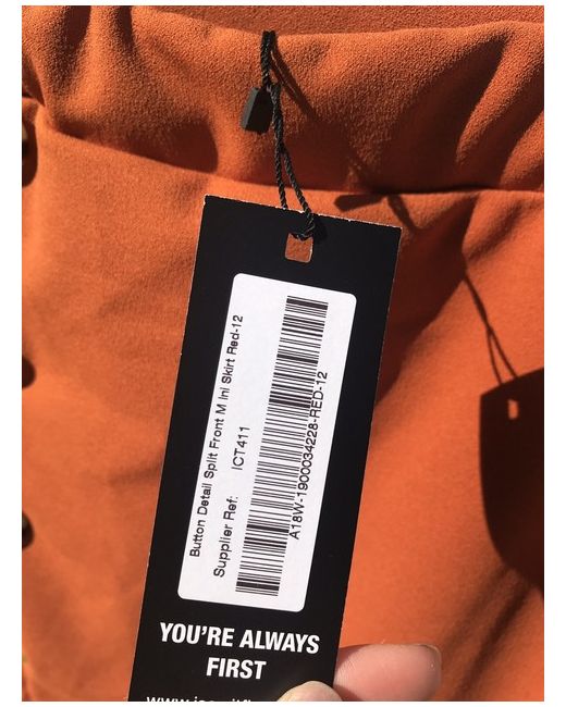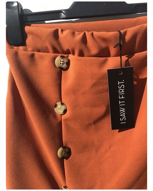 I Saw It First Size 12 Button Split Front Mini Skirt Orange Red. Condition is New with tags. I bought this skirt online but it isn’t as long as it looks on the model, and is more of a mini skirt. Dispatched with Royal Mail 2nd Class.
