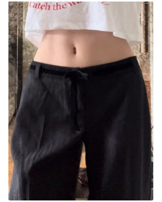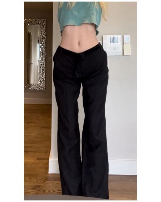 Super rare dolce & gabbana pinstripe trousers with a velvet/ lace detailing around the waist with a velvet bow. Super flattering! 100% wool.
