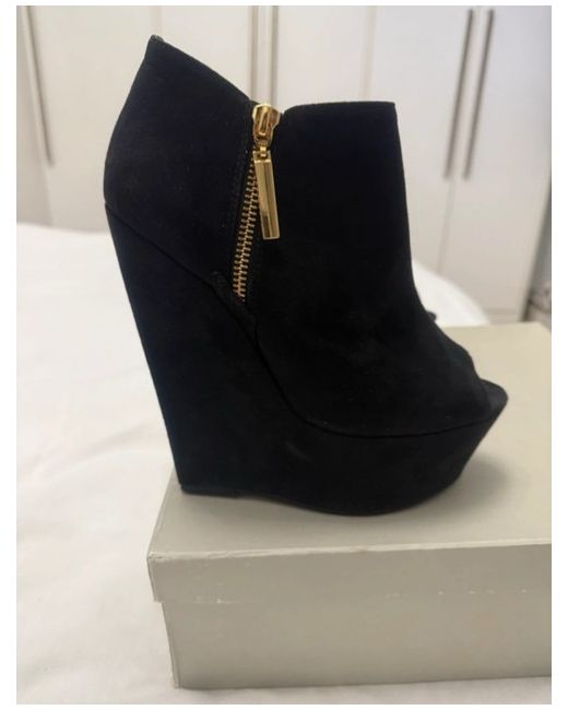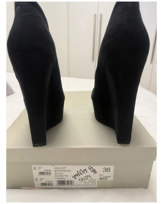 The Carvella Large Wedge Shoe Boot in UK shoe size 5 is a stylish and versatile platform heel designed for women. Made from black suedette, this casual yet chic shoe from Carvela is perfect for any occasion. The wedge heel adds a touch of elegance, making it a must-have addition to any woman's wardrobe.
