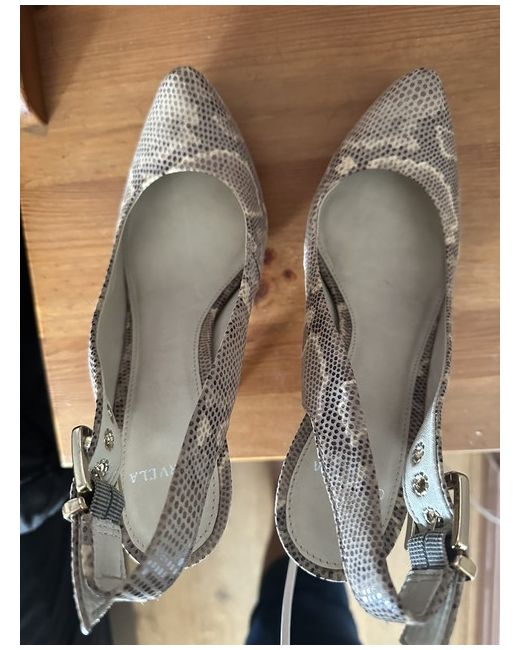 Carvela sling back shoes size 4, upper material leather with a snake skin print mixing a few tones of beige and grey