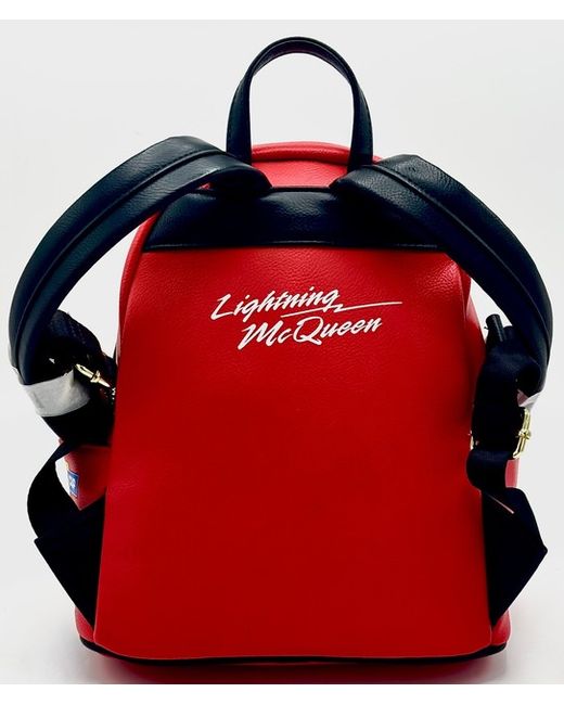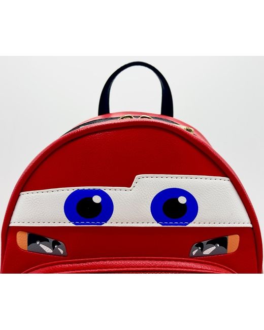This bright red Disney Pixar Cars bag features a cosplay design of the iconic high speed character with bright blue eyes, embroidered smile and his legendary 95 logo. Cloisonne Loungefly x Pixar Label.