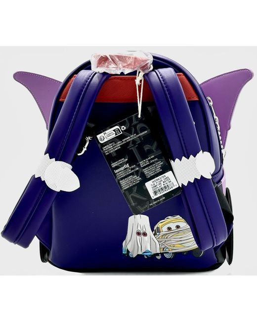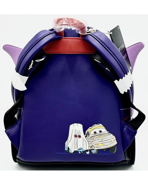 Cloisonne Loungefly x Pixar Label. Mater Vampire Cosplay Design. Silver Tow Hook Keyring. Inspired by the 2006 Disney Film Cars. Exterior Front Pocket. Moveable Wheel Appliques. Red Eyes & Sharp White Teeth.