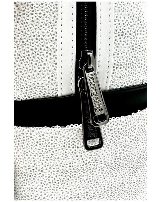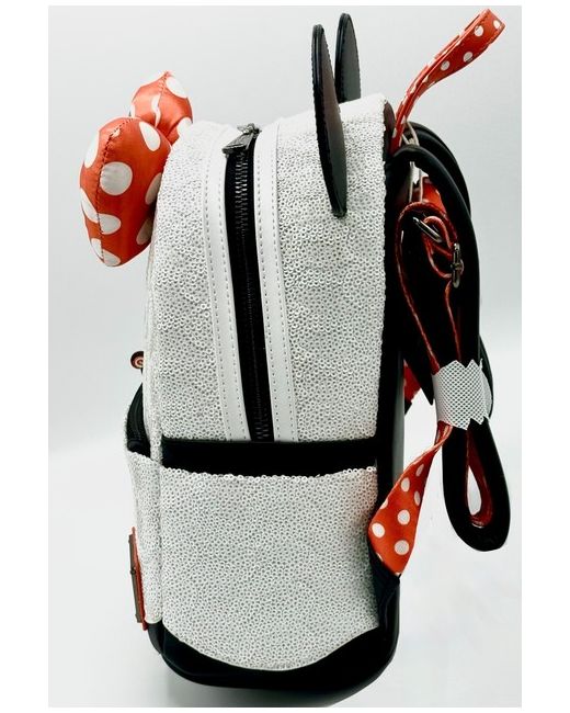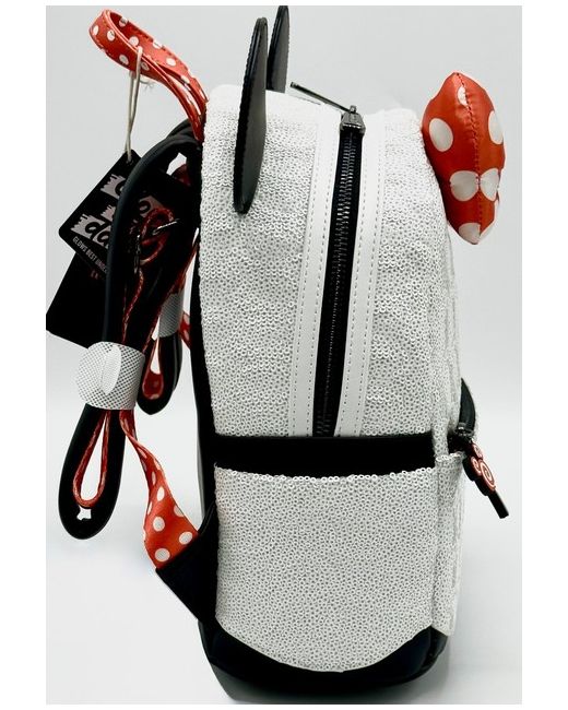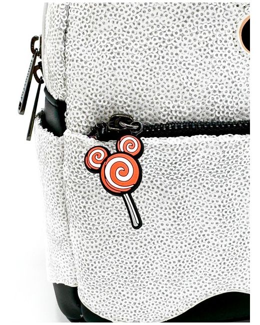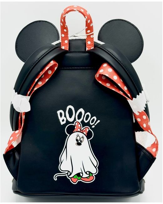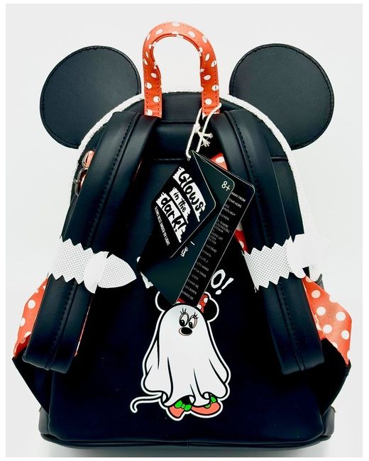 The piece also showcases her fantastic ears, polka spot bow and an adorable lollipop keyring charm. Cloisonne Loungefly x Disney Label. Minnie Mouse Ghost Cosplay Design. Glow In The Dark Effects. Top Carry Handle.