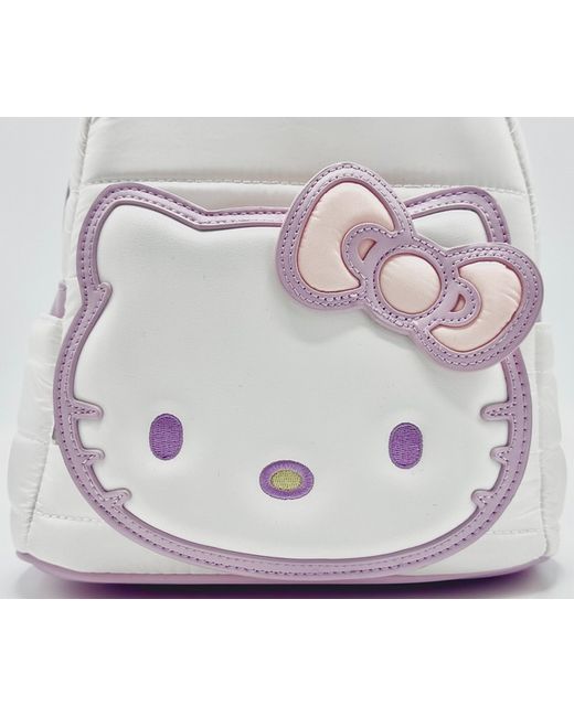 Cloisonne Loungefly x Sanrio Label. Quilted Texture Design. Hello Kitty Exclusive. Front Pocket with Face Applique. Double Zip Fastenings.