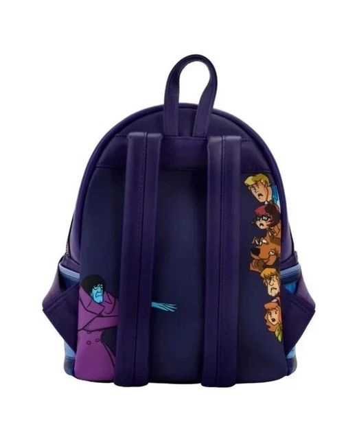 This Loungefly Scooby Doo Monster Chase Mini Backpack is the perfect birthday gift for any fan of the iconic cartoon. The backpack features a vibrant, multicoloured exterior with a Haunted Mansion pattern, as well as gold and purple hardware accents. The adjustable strap and outer pockets make it easy to carry all your essentials, while the zip closure keeps them secure. The backpack is made of high-quality faux leather and has a black and purple fabric lining. It comes with a brand card and bag charm for added style. Whether you're heading to a party or just out and about, this backpack is the perfect accessory for any occasion.