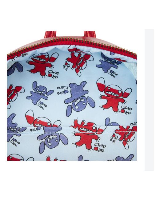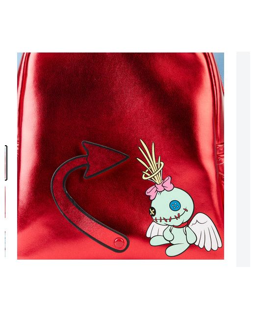 His padded devil horns poke up over the top, and his ears stick out on the sides. Take note of the coordinating inside lining. Who’s that cute little devil in disguise?. It’s Disney’s Stitch! On the back, you’ll find Scrump as an angel—and Stitch’s devil tail, which moves back and forth on a rivet.