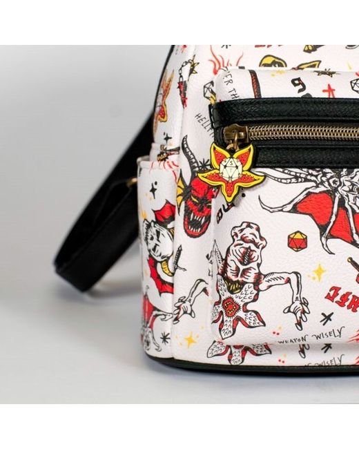 Get ready to rock the Loungefly Stranger Things Hellfire Club Mini-Backpack, perfect for fans of the hit series. This stylish backpack features a multicoloured exterior made from high-quality faux leather, giving it a sleek and trendy look. The zip closure ensures your belongings stay safe and secure, while the spacious interior provides ample room for all your essentials. Designed for both men and women, this mini-backpack is a must-have for any Stranger Things fan. The backpack features the iconic Hellfire Club character and is perfect for carrying your everyday items. Whether you're headed to school, work, or a day out with friends, this backpack is sure to turn heads. Don't miss out on your chance to own this amazing Loungefly backpack.