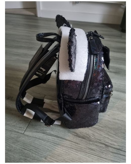 This is a brand new Loungefly Disney mini backpack. It is covered in holographic black sequins. It has Minnie Mouse ears and a bow. It has a star zip pull. It is brand new with the tag. From a pet and smoke free home.