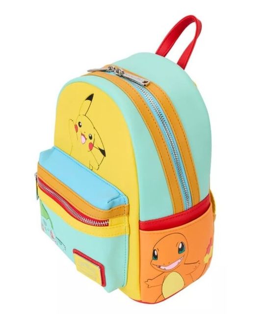 This Loungefly mini backpack is the perfect accessory for any Pokémon fan. Featuring a colourblock pattern with Pikachu, Bulbasaur, Charmander, Squirtle, and Eevee, this backpack is made of high-quality vegan leather (polyurethane). It has adjustable shoulder straps and is perfect for travel, parties, or casual use. This backpack is an officially licensed Pokémon product, making it a must-have for any collector. With its compact size and fun design, it's ideal for carrying your essentials while on the go.