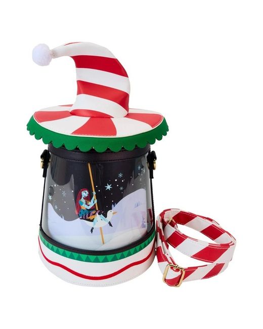 Up and down and ‘round we go! Jack and Sally take Christmas Town for a spin on this whimsical crossbody bag. Twist the bottom of the bag to set the carousel in motion, bringing the scene to life with unique spinning details!
